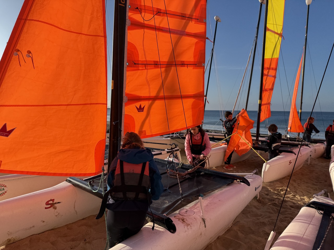 En septembre, octobre, tous les élèves de CM ont bénéficié de deux journées voile au club du Yagga. Cette activité permet aux élèves de s’initier à la navigation sur catamaran.