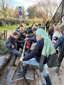 C’était le moment le plus drôle ! Équipés de bottes et d’épuisettes, nous avons traversé la vase (certains y sont restés presque collés !).
