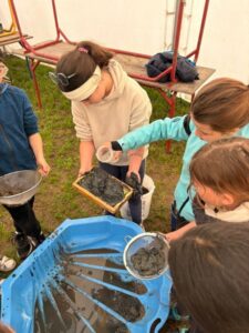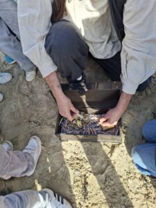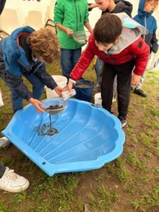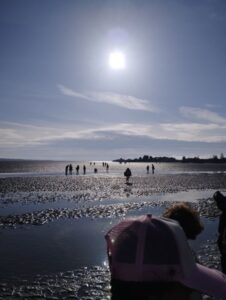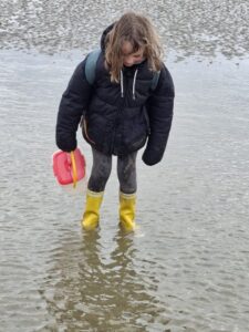 C’était le moment le plus drôle ! Équipés de bottes et d’épuisettes, nous avons traversé la vase (certains y sont restés presque collés !).