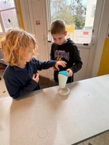 L’Or Blanc : Les CM1 ont également profité d’un atelier spécifique sur le fonctionnement des marais salants pour comprendre l’or blanc de notre région. Ils ont identifié les 3 états de la matière et observé les changements d’état.