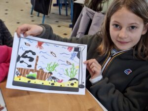 • Le mystère de la mouette : Notre mascotte Gwenn avait perdu son ami. Grâce à un plan et des indices sur la forme du bec, des pattes, l’envergure des ailes et le régime alimentaire nous avons identifié et retrouvé son ami : le goéland argenté (reconnaissable à la tache rouge sur son bec !).