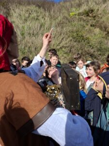 Puis il nous restait à retrouver le coffre à l’aide d’une carte…. Victoire ! Le coffre a été trouvé dans les dunes : il contenait des bijoux… et des Carambars !