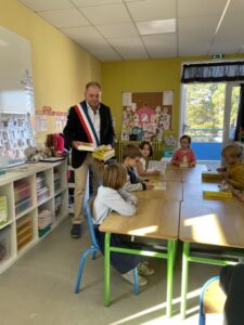 Vendredi 10 octobre, M. le Maire et Mme Tesson, Adjointe à la Petite enfance, à l’Enfance et à la Jeunesse, sont venus rendre visite aux élèves de CP.